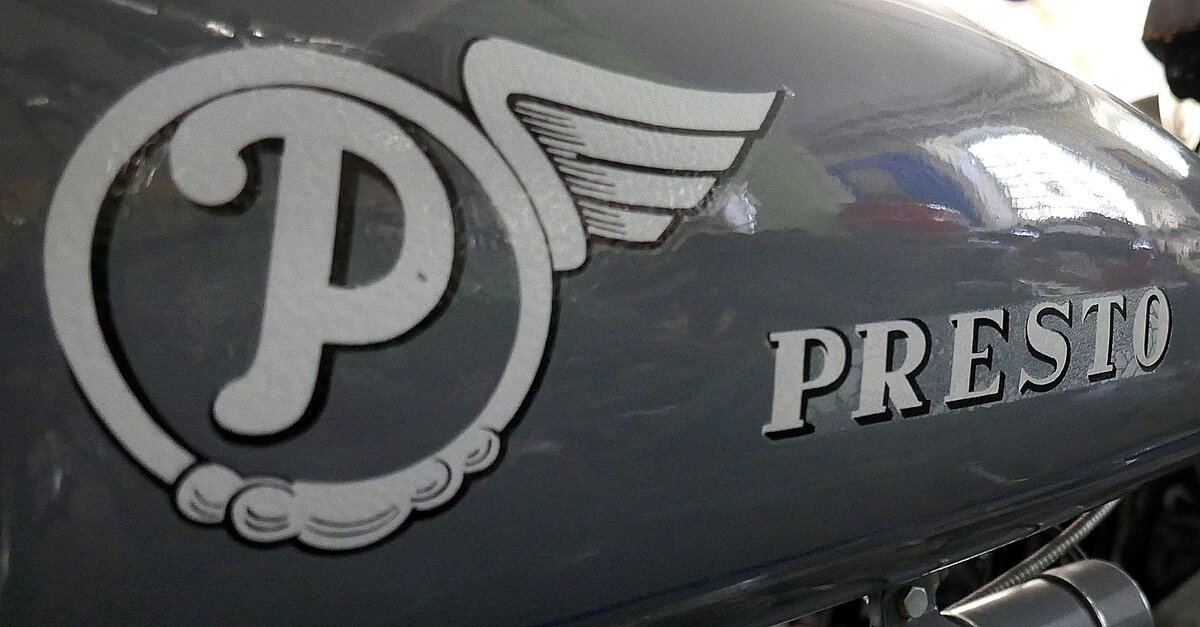 PRESTO, Tankaufschrift am Leichtmotorrad von 1939 der Presto-Werke in Chemnitz, Sept.2021
