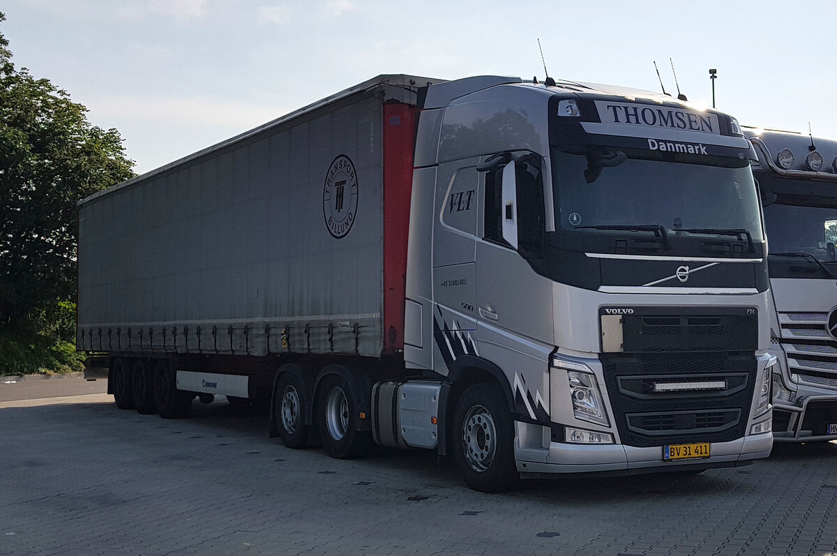=Volvo FH 500-Sattelzug der Spedition THOMSEN aus Dänemark steht auf einem Rastplatz an der A 7, 07-2021