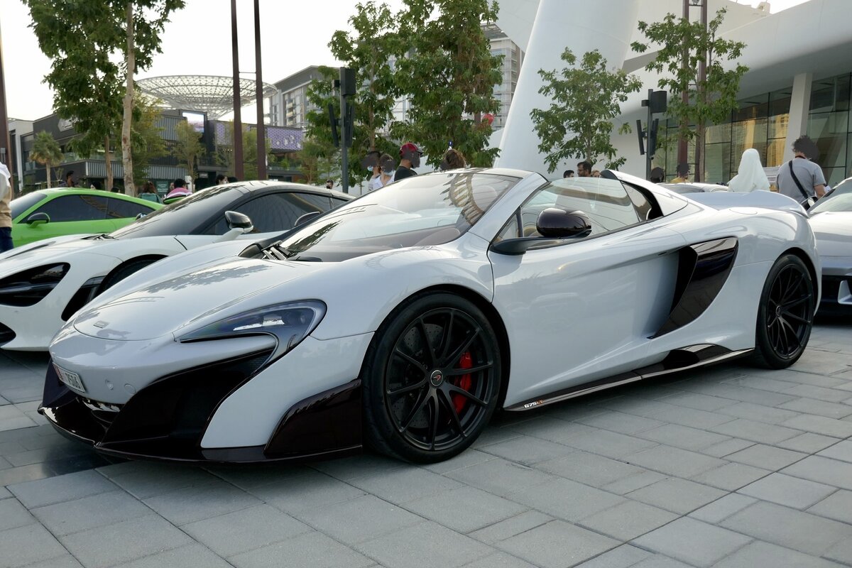 Weisser McLaren 675LT am 1.12.21 vor dem Riesenrad Ain Dubai.