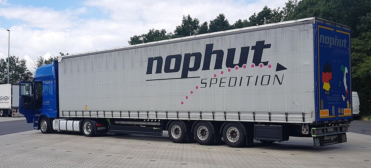 =DAF XF-Sattelzug der Spedition NOPHUT steht im Juli 2021 auf dem Rasthof Fulda-Nord