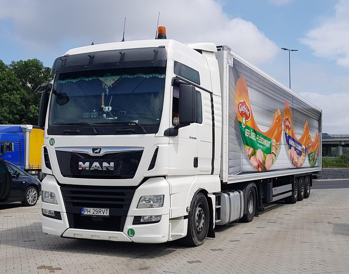 =Iveco-Sattelzug von AN-RO-Logistic steht im Juli auf einem Rastplatz nahe der A 7