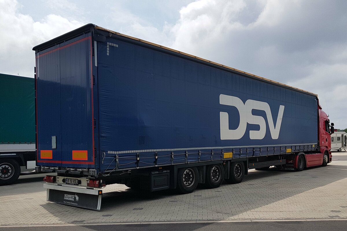=Scania steht mit einem Auflieger von DSV auf dem Rasthof Fulda-Nord, 07-2021