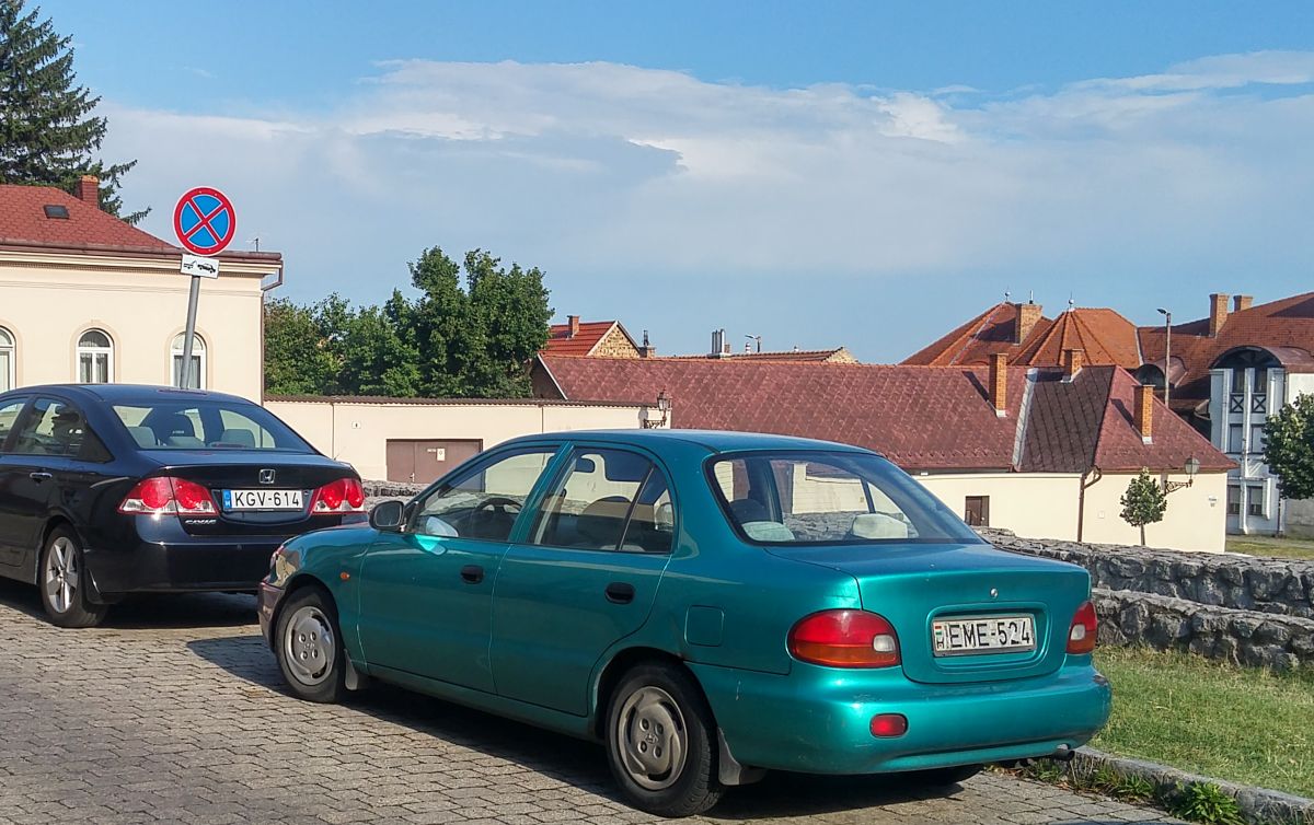 Rückansicht: Hyundai Accent aus der ersten Generation, gesehen in Juli, 2020.