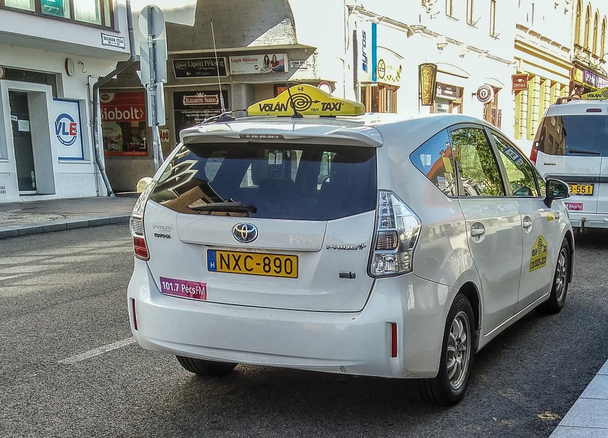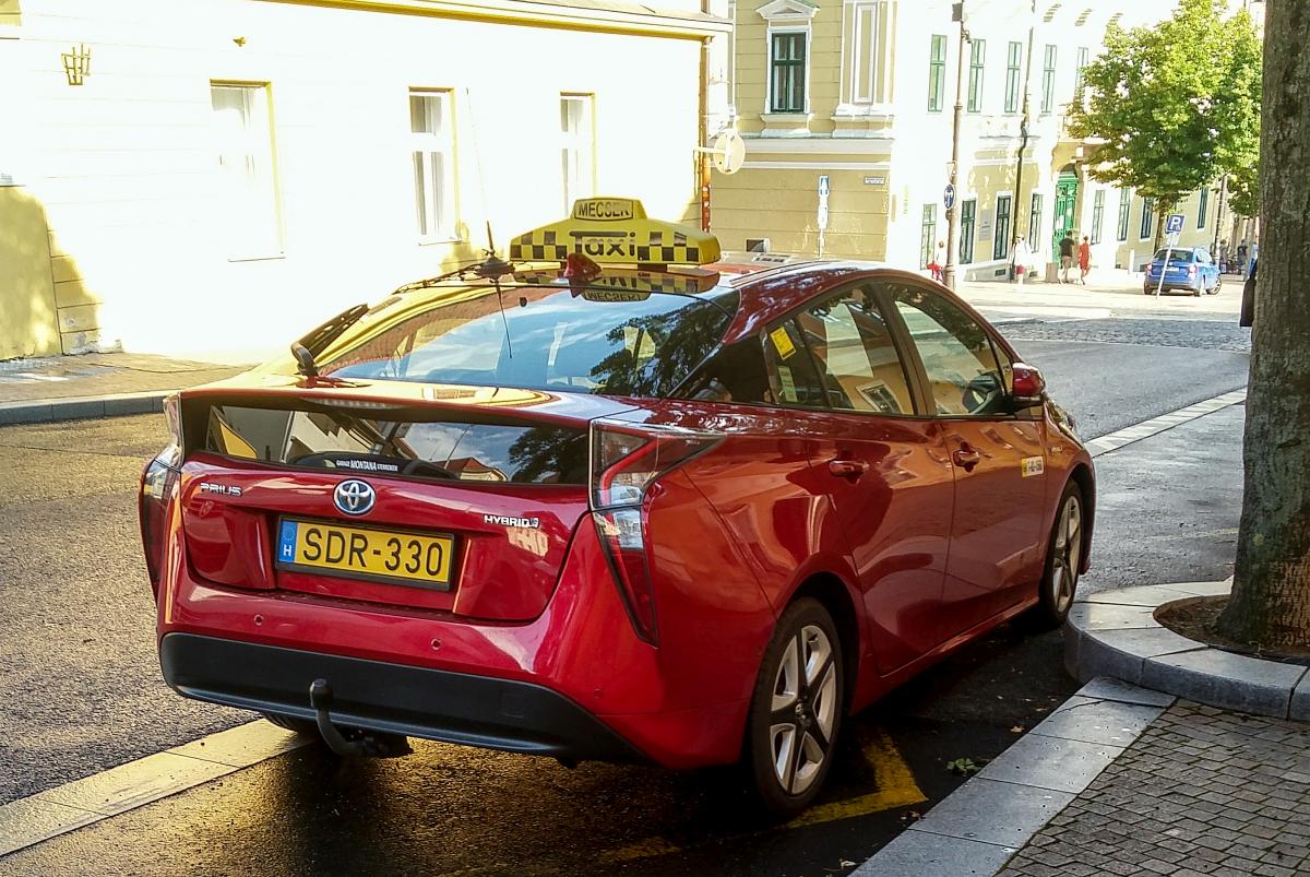 Rückansicht: Toyota prius IV als Taxi, fotografiert in Juli 2020.