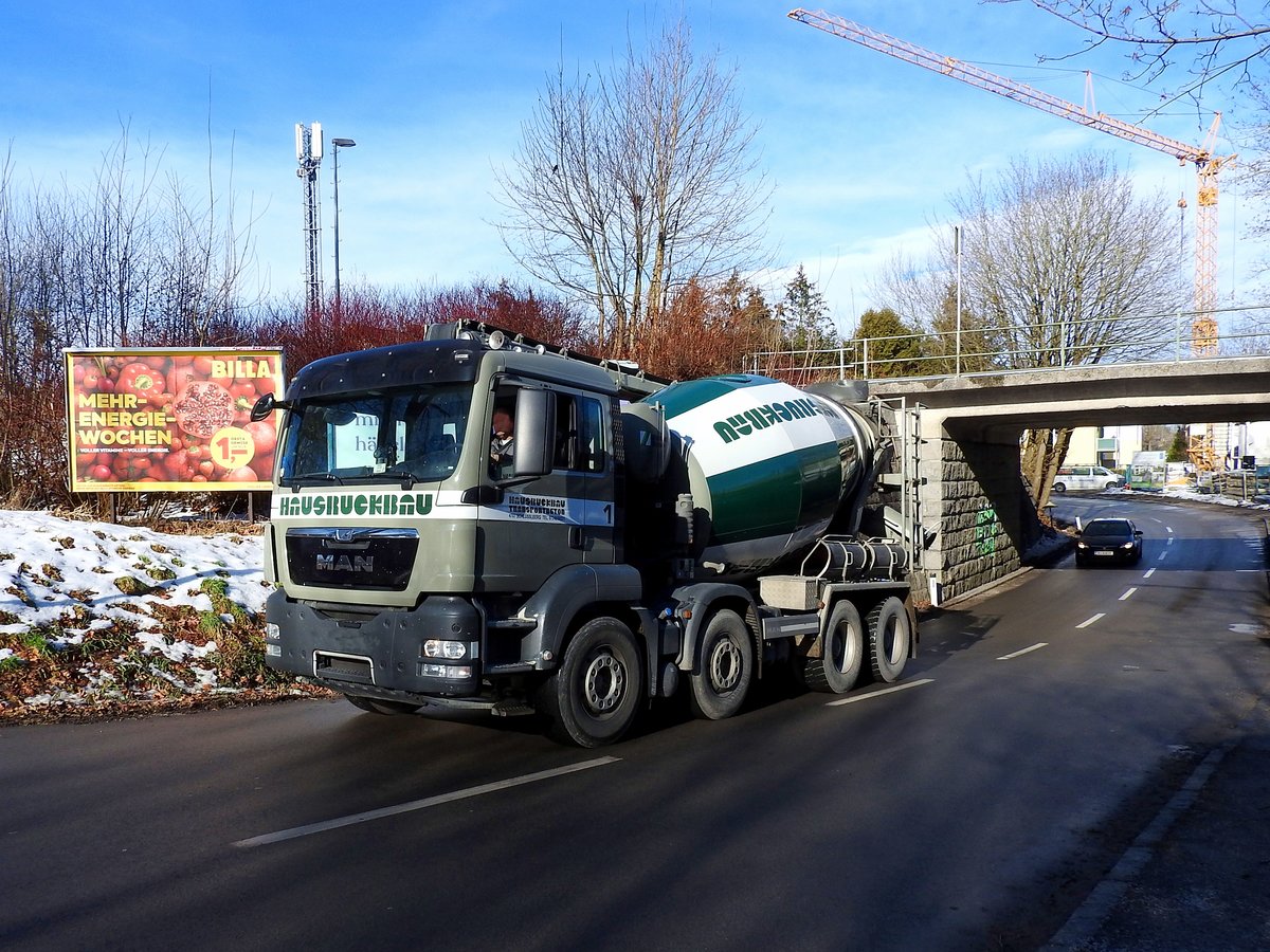 MAN-Betonmischer, hat soeben die dahinterliegende Baustelle versorgt, und ist wieder am Weg, um weiteren Nachschub der grauen Bausubstanz heranzuschaffen; 210122
