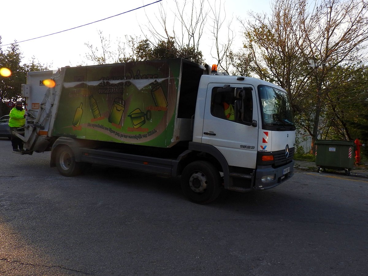 MB-1523 mit Müllwagenaufbau, ist schon Frühmorgens im Bereich Delphi unterwegs; 190404