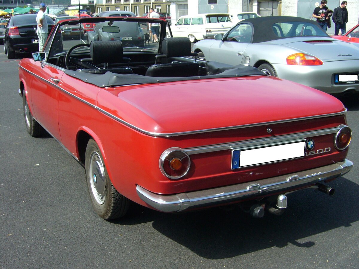 Heckansicht eines BMW 1600 Baur-Cabriolet. Oldtimertreffen an Mo´s Bikertreff in Krefeld am 27.06.2021.