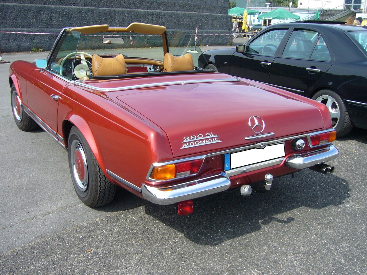 Heckansicht eines Mercedes Benz W113 E28 "Pagode". Oldtimertreffen an Mo´s Bikertreff in Krefeld am 27.06.2021.