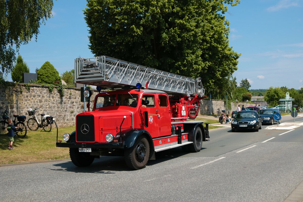 Mercedes Benz TLF am 04.07.21 bei einer Oldtimer Parade zum Jubiläum 75 Jahre Kreisfeuerwehrverband Gießen in Lich (Hessen)