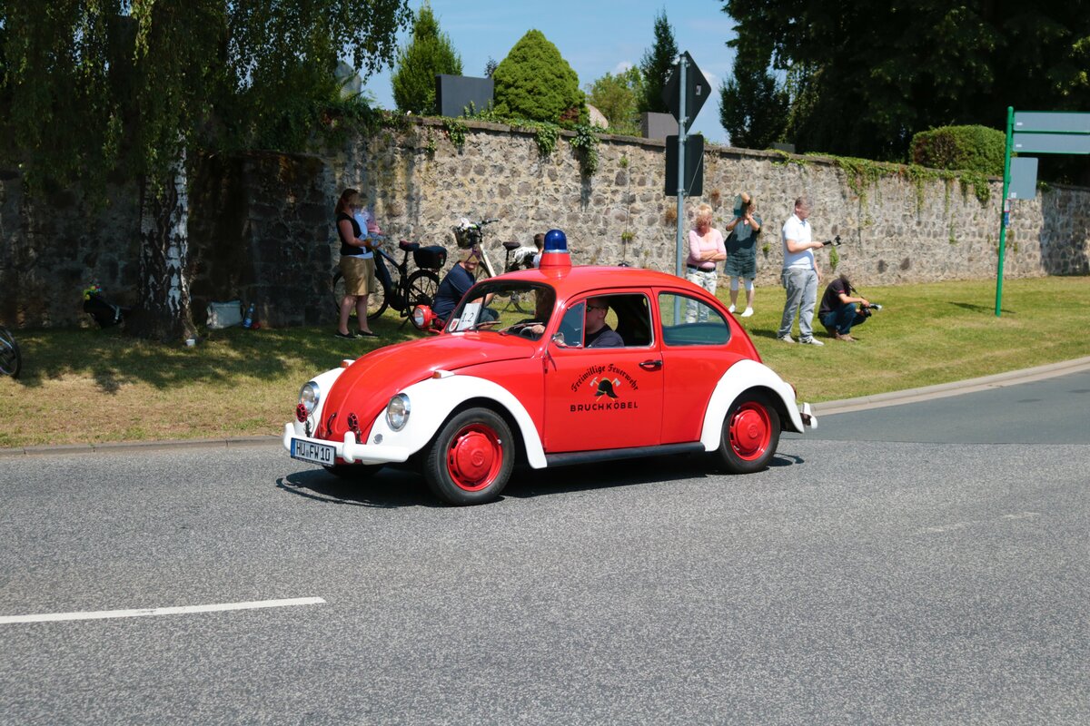 VW Käfer Feuerwehrauto am 04.07.21 bei einer Oldtimer Parade zum Jubiläum 75 Jahre Kreisfeuerwehrverband Gießen in Lich (Hessen)