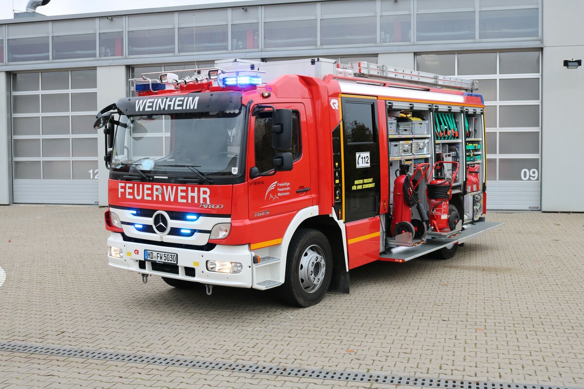 Feuerwehr Weinheim Stadt Mercedes Benz Atego Rosenbauer LF30 am 30.10.21 bei einen Fototermin