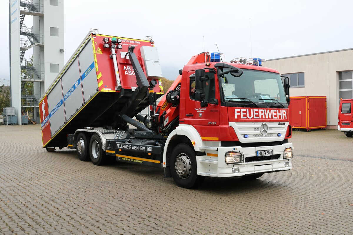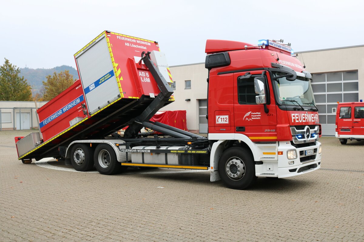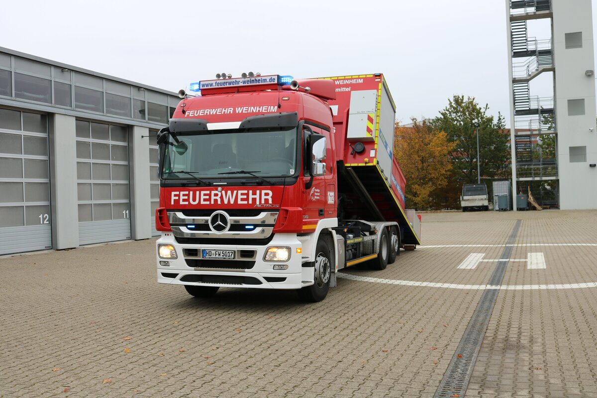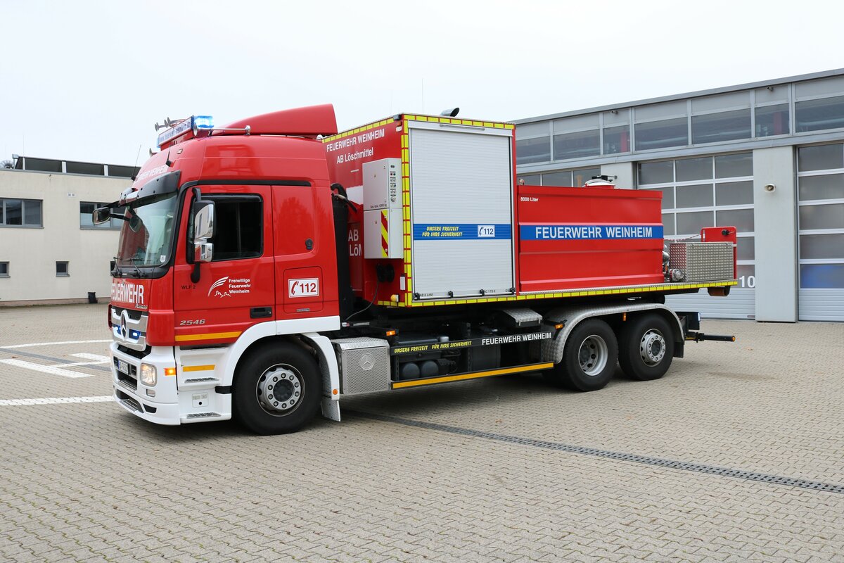 Feuerwehr Weinheim Stadt Mercedes Benz Actros WLF mit AB Löschmittel am 30.10.21 bei einen Fototermin