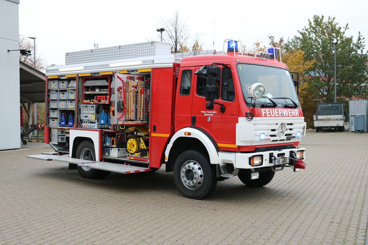 Feuerwehr Weinheim Stadt Mercedes Benz Rüstwagen am 30.10.21 bei einen Fototermin