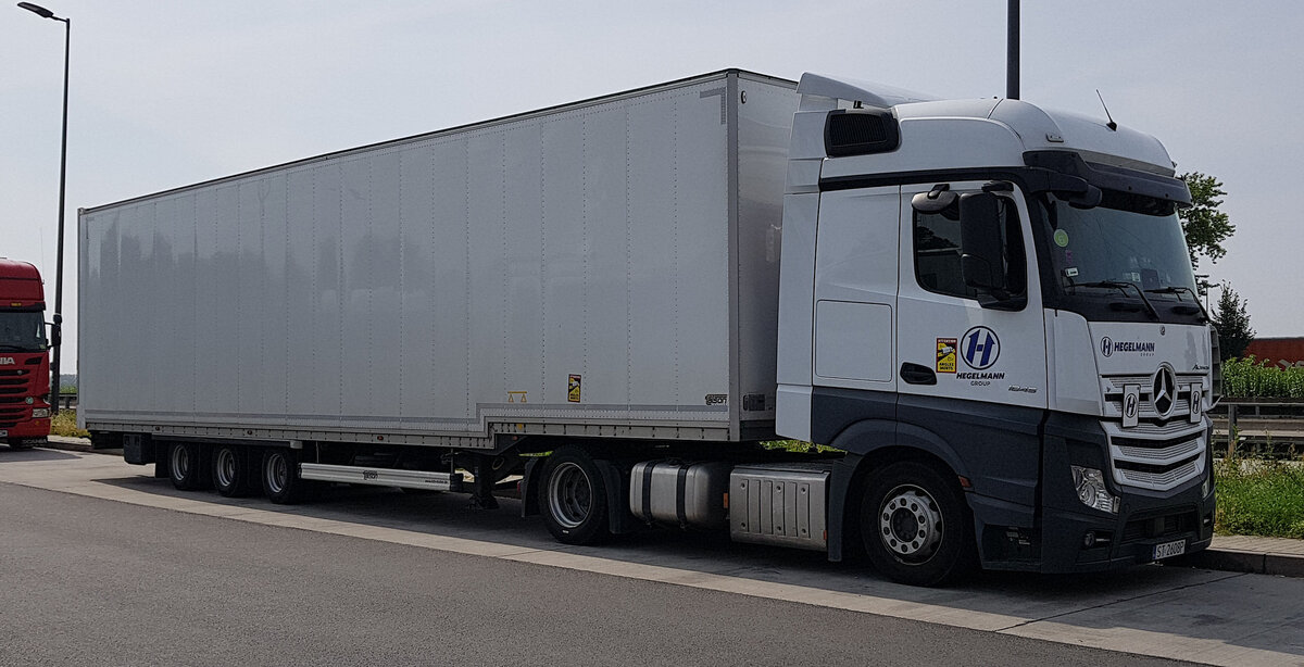 =MB Actros transportiert einen Auflieger von SKAT im Juli 2021