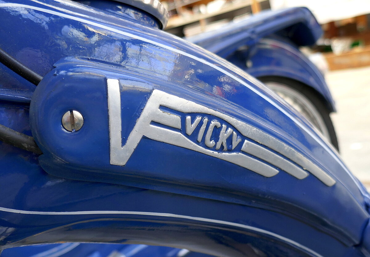 Victoria-Werke Nürnberg, Tankaufschrift am Moped Vicky IV von 1957, Breig's Motorrad-Und Spielzeugmuseum, Sept.2021