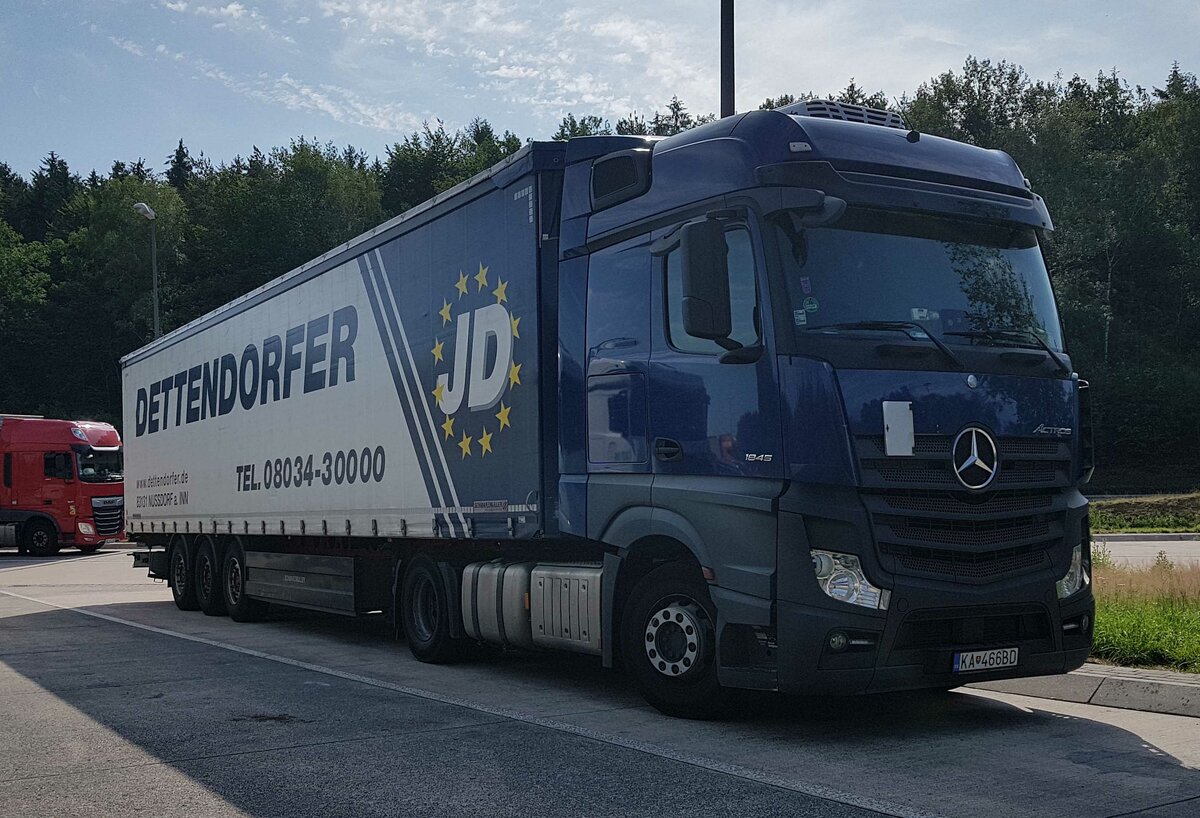 =MB Actros 1845 mit einem Auflieger der Spedition DETTENDORFER, 07-2021