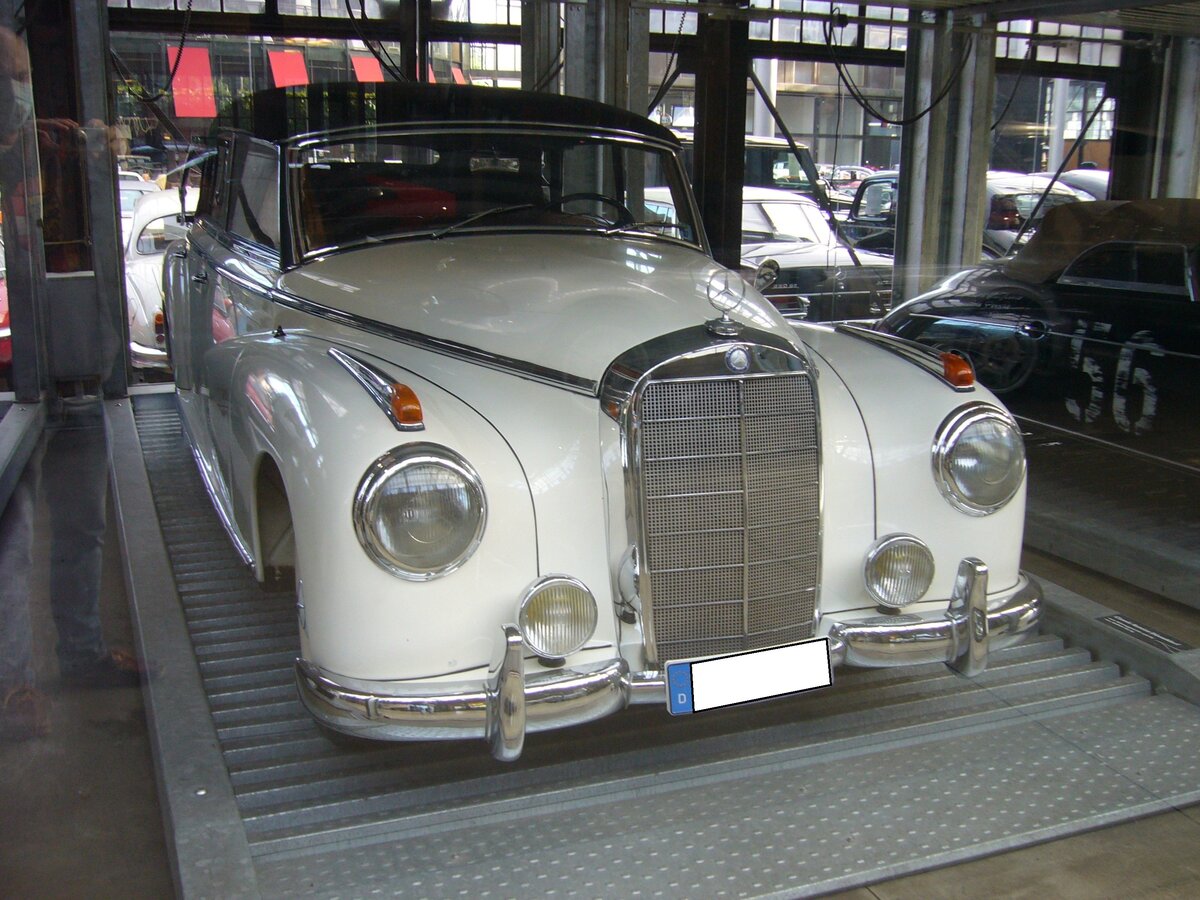 Mercedes Benz W186 II Cabriolet D, gebaut von November 1951 bis März 1954. Dieser Typ war das erste Modell der berühmten "Adenauer-Baureihe". Für ein solches Fahrzeug musste man mindestens DM 23.700,00 anlegen. Eine enorme Summe, drei Jahre nach der Währungsreform. Angetrieben wird der Wagen von einem Sechszylinderreihenmotor, der aus einem Hubraum von 2996 cm³ 115 PS leistet. Der abgelichtete Wagen dürfte aus dem Jahr 1952 stammen. Classic Remise Düsseldorf am 28.09.2021.