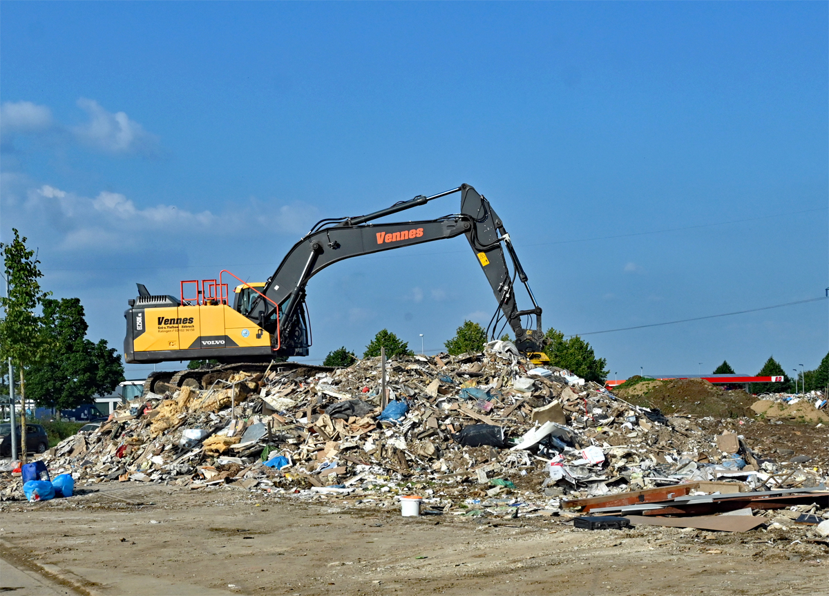 Volvo Raupenbagger bei Aufräumarbeiten 7 Wochen nach der Flugkathastrophe in Swisttal-Odendorf - 31.08.2021
