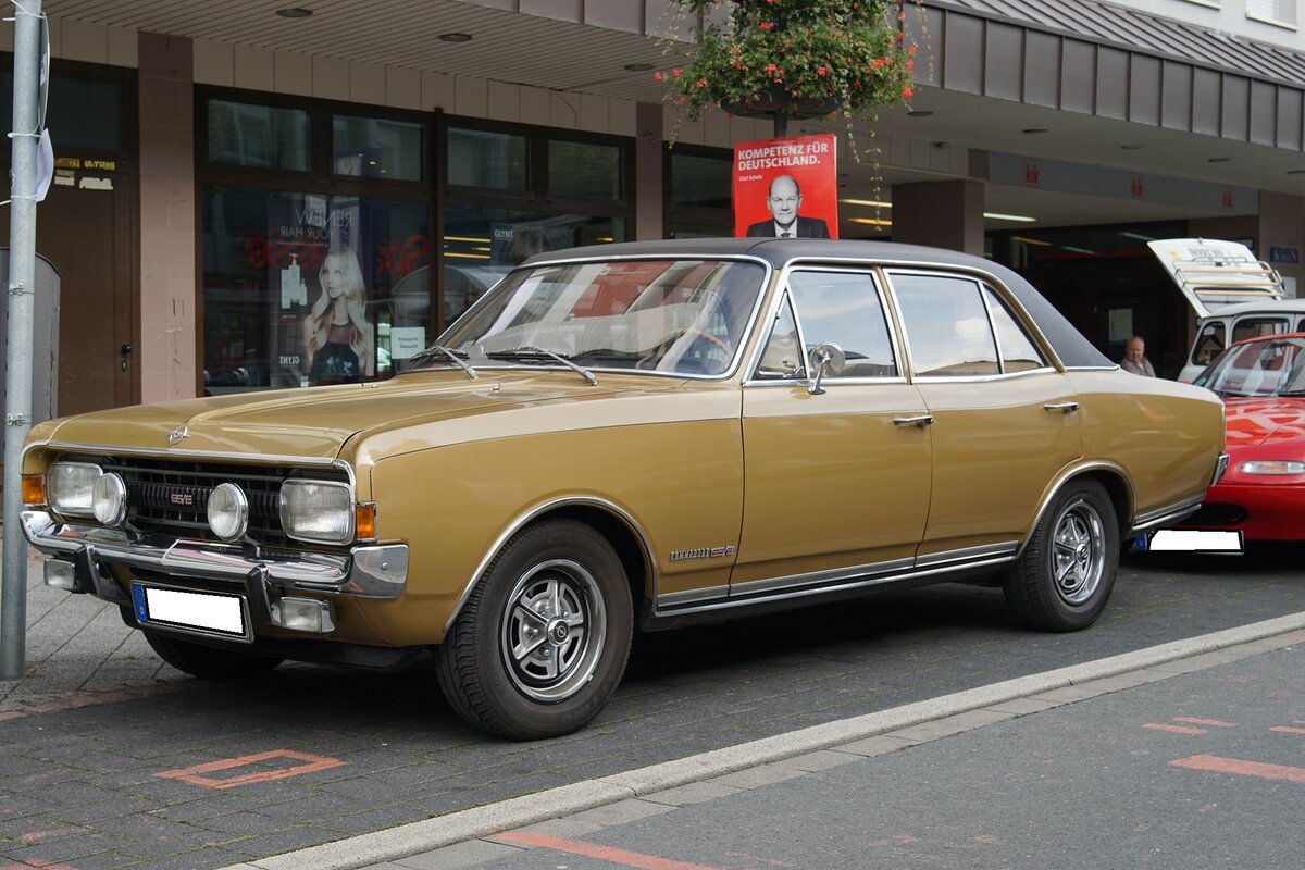 Opel Commodore A GS/E Limousine. Ende Februar 1967 stand der die neue Modellreihe Commodore bei den Opel-Händlern. Der vom Opel Rekord C abgeleitete Typ fand bei Publikum rasch Anerkennung als preisgünstiger Wagen für gehobene Ansprüche, da er mehr Prestige, Leistung und Fahrkomfort bot. Ab März 1970 wurde dann der Commodore GS/E angeboten. Er war wie seine Vorgänger als Limousine (meistens viertürig bestellt) und Coupe lieferbar. Ein solcher Commodore war im Jahr 1970 ab DM 12.300,00 zu haben. Der Sechszylinderreihenmotor hat einen Hubraum von 2490 cm³ und leistet 150 PS. Oldtimertreffen in Heiligenhaus am 12.09.2021.