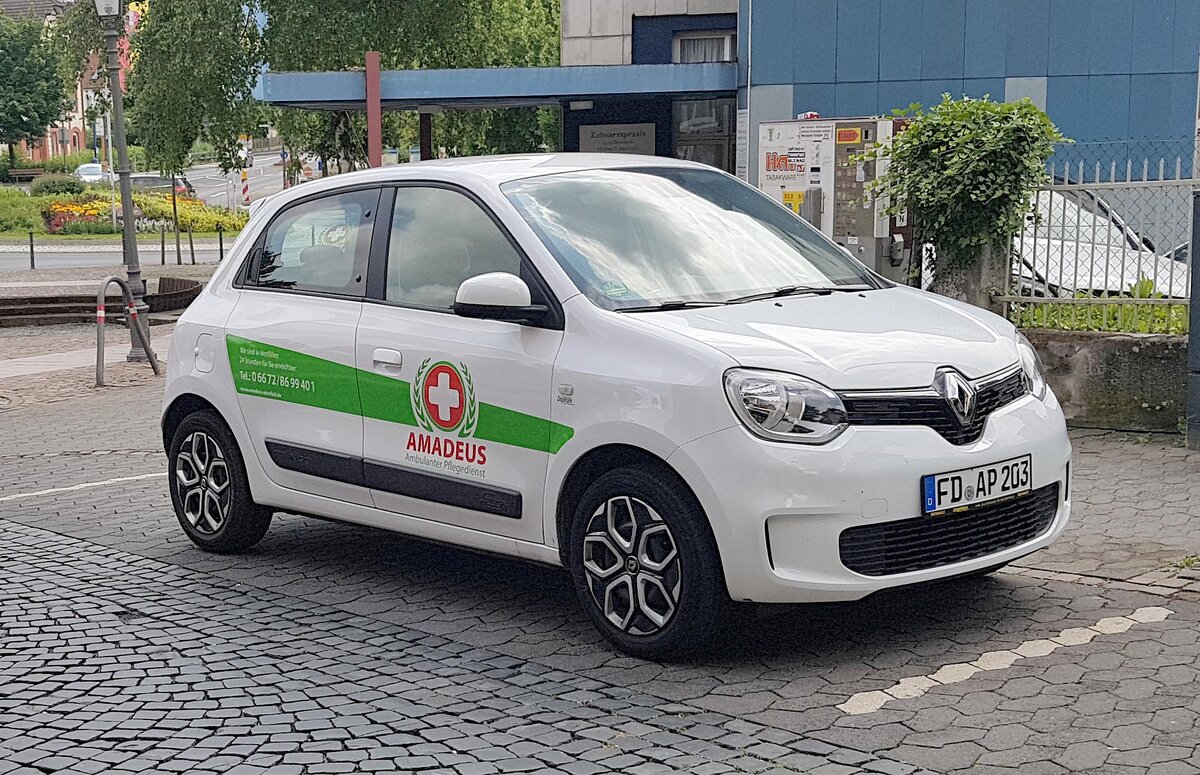 =Renault Twingo vom Pflegedienst AMADEUS steht im Juni 2021 in Hünfeld