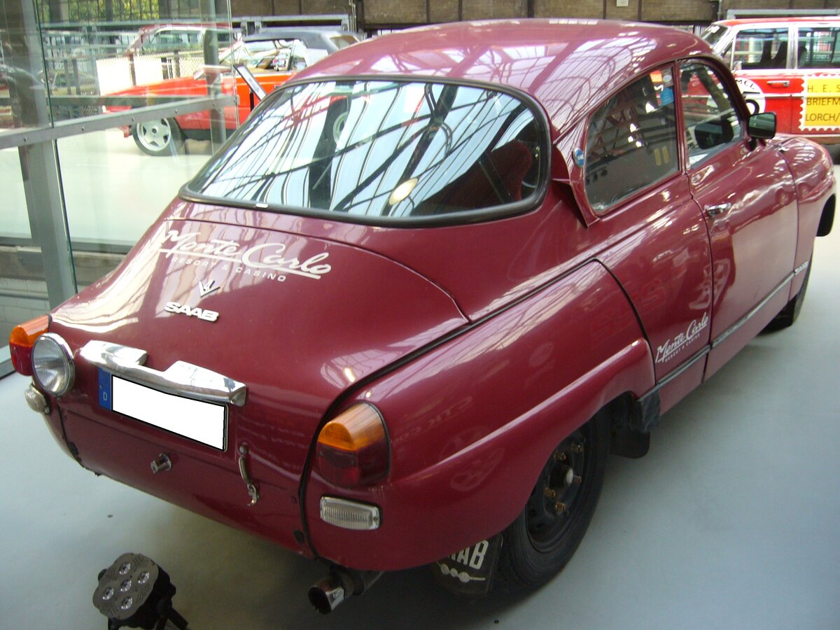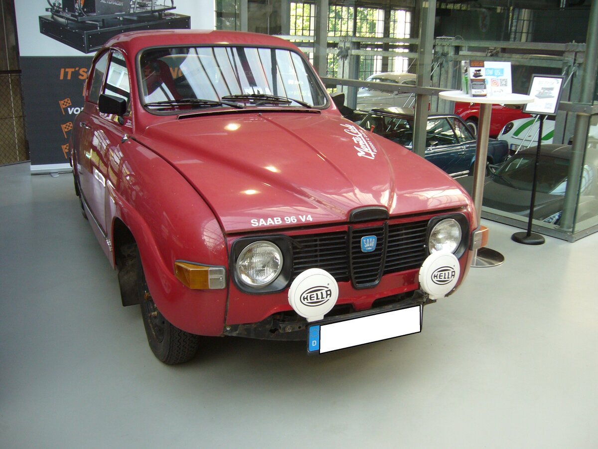Saab 96. Der Saab 96 wurde bereits 1960 vorgestellt. Hier wurde ein Modell abgelichtet, das mit dieser Front von 1963 bis 1969 produziert wurde. Dieser Wagen ist wohl ein Modell ab 1966, da er schon mit dem V4-motor von Ford ausgerüstet ist. Der V4-Motor aus dem Hause Ford hat einen Hubraum von 1498 cm³ und leistet 65 PS. Classic Remise Düsseldorf am 28.09.2021.