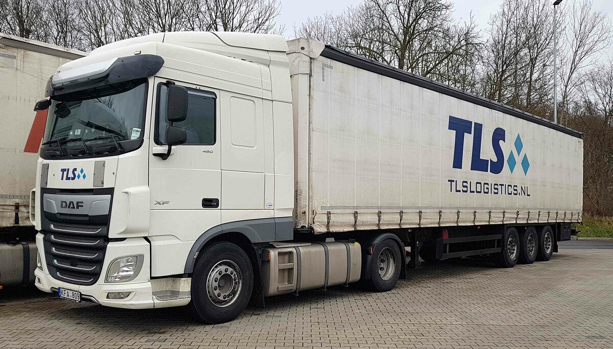 =DAF XF von TLS, einem Vermieter von Transportkapazitäten, rastet im Januar 2022 an der A 7