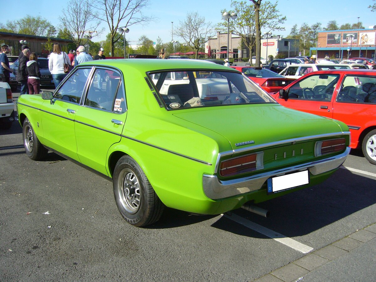 Ford Taunus P7a Hardtop-Coupe 20M TS. Die Modellreihe P7a wurde nur von von August 1967 bis Juli 1968 produziert. Vielen Ford-Kunden wirkte die Karosserie zu "amerikanisch". Nach nur 155.780 Autos (alle Karosserieversionen) wurde der P7a durch den P7b abgelöst. Beim 20M TS standen zwei Sechszylinderreihenmotor zur Auswahl: 1998 cm³ mit 90 PS oder 2293 cm³ mit 108 PS. Für ein Fahrzeug mit dem 2.0l Motor musste man genau DM 9500,00 auf die Theke des Ford-Händlers legen. Oldtimertreffen Café del Sol Gelsenkirchen am 18.04.2022.