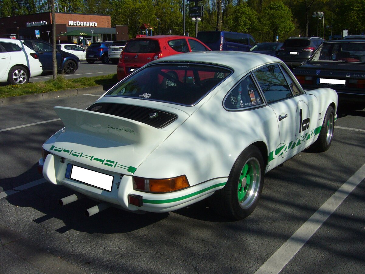 Heckansicht einer zweitürigen Opel Rekord B Limousine aus dem Jahr 1966. Oldtimertreffen Café del Sol Gelsenkirchen am 18.04.2022.