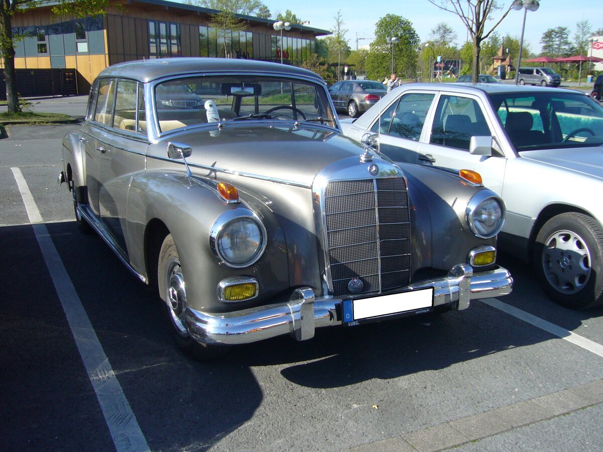 Mercedes Benz W189 300d, gebaut von 1957 bis 1962. Der 300d war die letzte Ausbaustufe des bereits 1951 vorgestellten W186 II Typ 300 (genannt "Adenauer-Mercedes"). Er wurde während seiner Produktionszeit mehrfach modernisiert. Der Sechszylinderreihenmotor wird von einer Bosch-Einspritzpumpe mit Kraftstoff versorgt. Aus einem Hubraum von 2996 cm³ leistet der Wagen 160 PS und macht ihn 170 km/h schnell. Oldtimertreffen Café del Sol Gelsenkirchen am 18.04.2022.