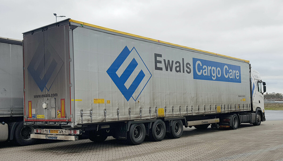 =Scania 410 S der Spedition EWALS steht zur Fahrerpause auf einem Rastplatz an der A 7, 01-2022