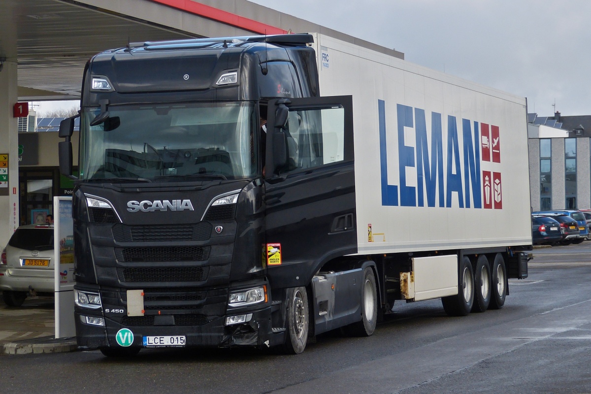 Action Deutschland GmbH mit einem Sattelzug mit SCANIA R 450 Zugmaschine am 25.04.22 Berlin Marzahn.