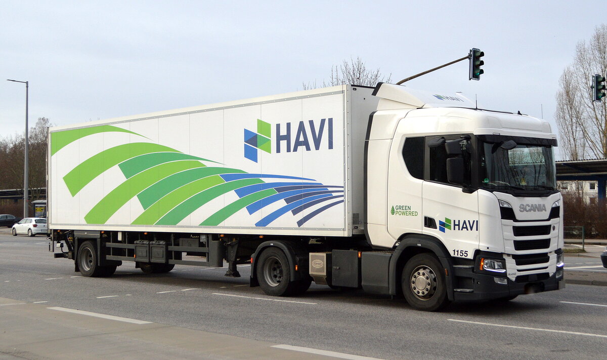 HAVI Logistics GmbH mit einem Sattelzug mit SCANIA R 410 Zugmaschine am 03.02.22 Berlin Marzahn.