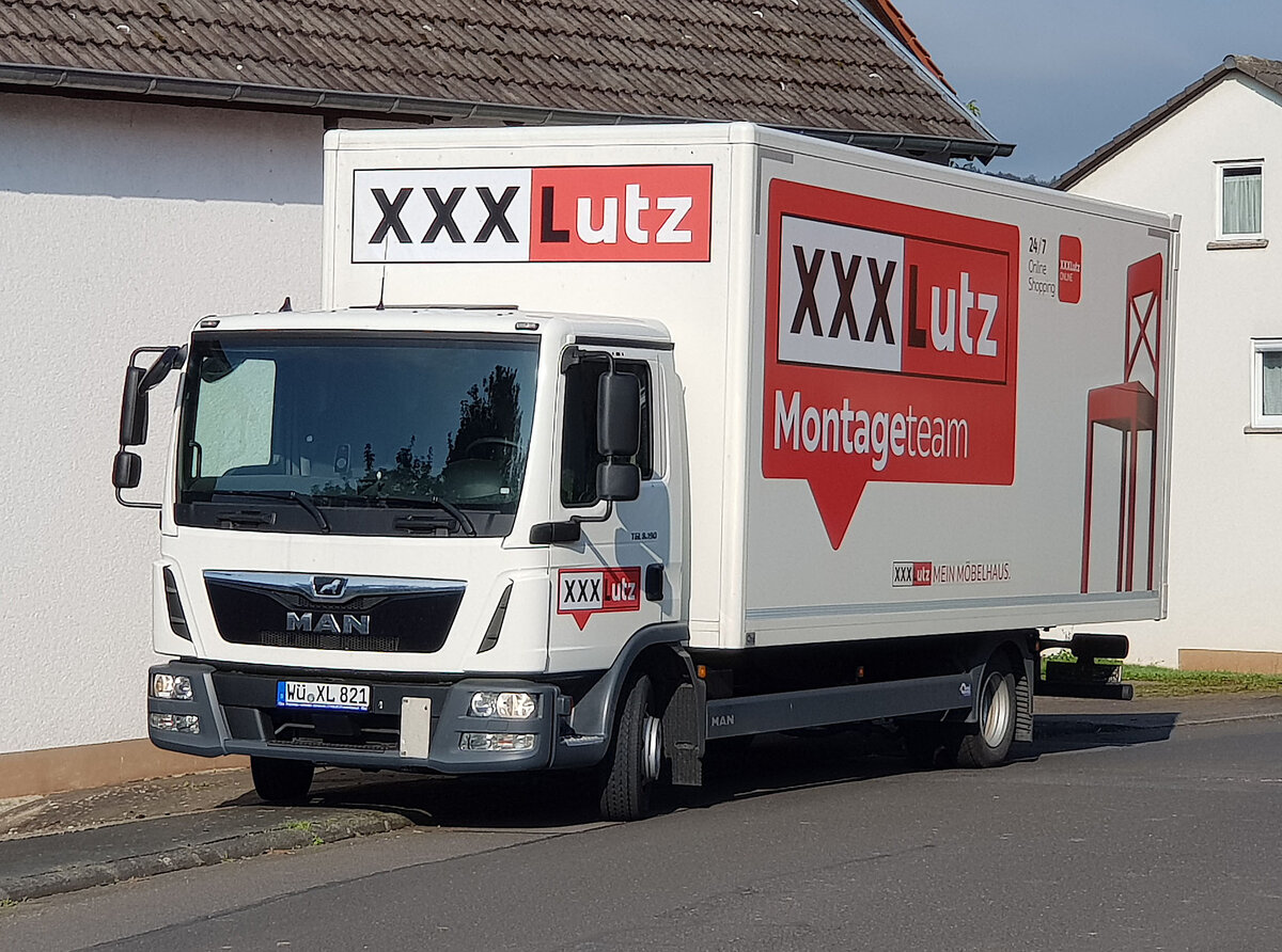 2x MAN TGL (links) und 1x MAN TGM (rechts) in einem Gewerbegebiet in Ottobrunn, unweit von München, Februar 2022