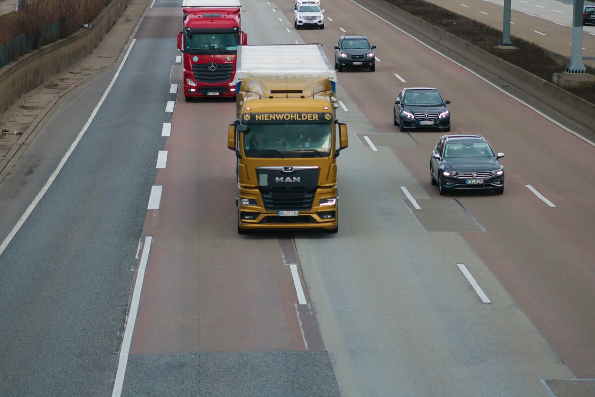 Mercedes Benz Actros am 05.02.22 von einer Brücke aus fotografiert