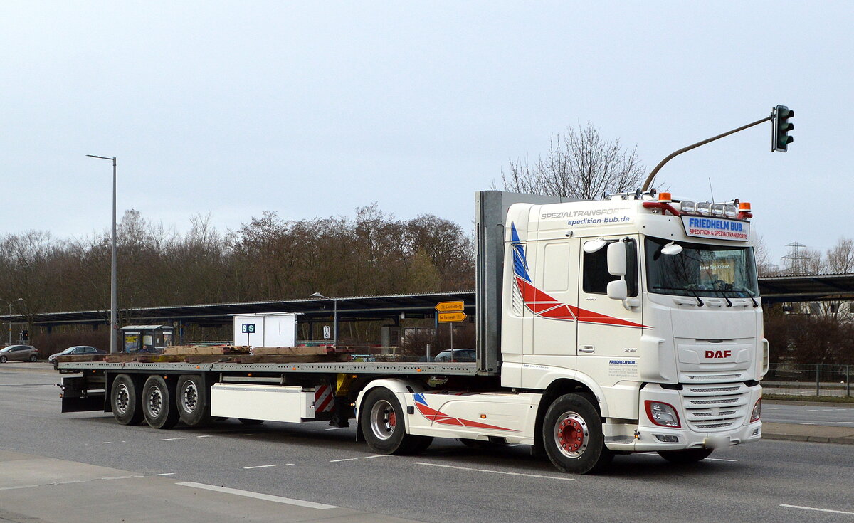 Spedition Friedhelm Bub OHG mit einem Sattelzug mit DAF XF 480 Zugmaschine am 03.02.22 Berlin Marzahn.