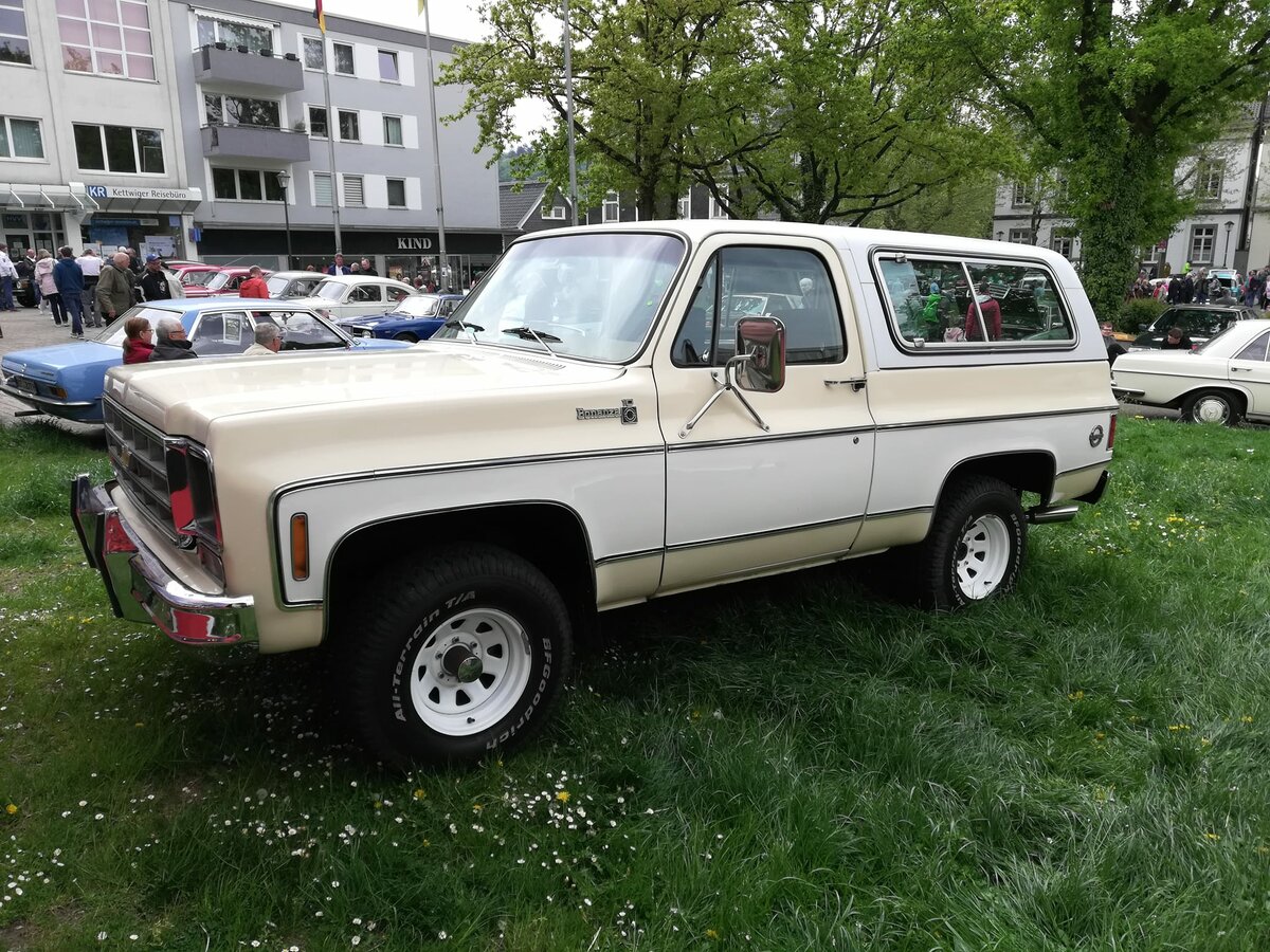 Chevrolet C10 "Bonanza" aus dem Jahr 1977 mit Campingaufsatz für die Ladefläche. Oldtimertreffen des AMC Essen-Kettwig am 01.05.2022.