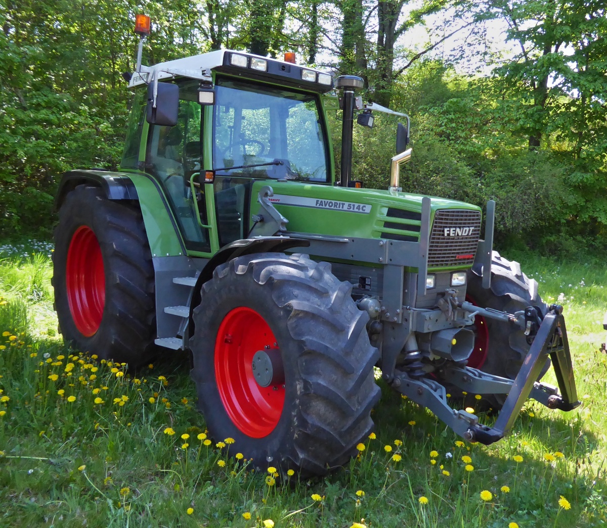 Fendt Favorit 514 C, steht nahe Versorgungspunkt nahe der Staumauer von Esch Sauer. 09.05.2022