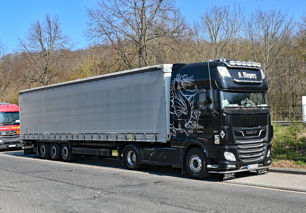 Fendt F 380 GT mit Hänger, wartet am Versorgungspunkt nahe der Staumauer von Esch Sauer, auf die letzten Mitfahrer, um seine Fahrt zum nächsten Treffpunkt fortzusetzen. 05.2022