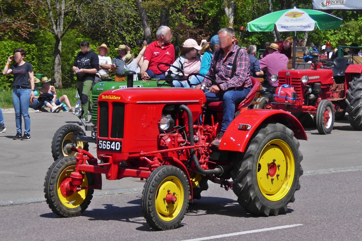 Gut Gelaunt erreichen diese Teilnehmer, den Treffpunkt in Lulzhausen mit dem Eicher Oldtimertraktors, während der Rundfahrt am Stausee von Esch Sauer entlang. 05.2022