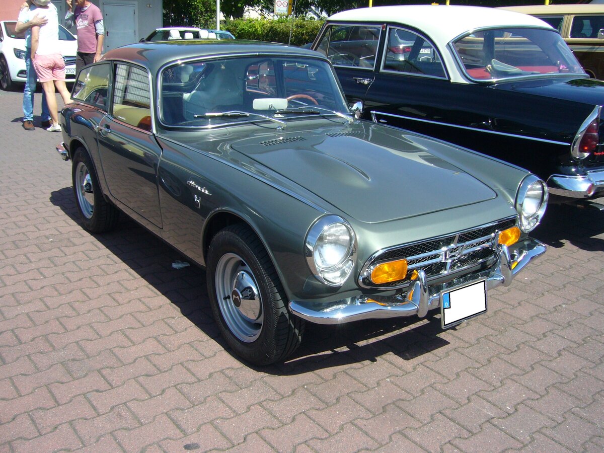 Honda S800 Coupe, gebaut von 1966 bis 1970. Der S800 war als Coupe und als Cabriolet lieferbar. Der sehr drehfreudige Vierzylinderreihenmotor hat einen Hubraum von 791 cm³ und leistet 67 PS. Insgesamt wurden ca. 11.500 Autos vom Typ S800 produziert (beide Karosserievarianten zusammen). Davon wurden ca. 7.200 Autos nach Europa exportiert. Oldtimertreffen in Essen-Burgaltendorf am 15.05.2022.