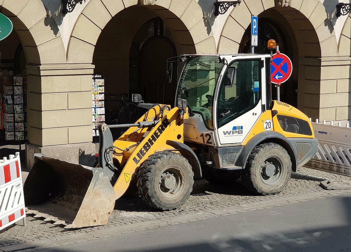 =Liebherr 506 steht auf einer Baustelle in der Würzburger Innenstadt, 03-2022