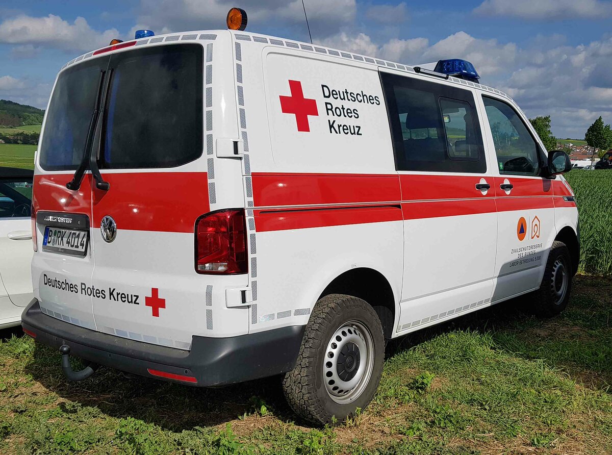 =VW T6 des DRK steht auf dem Parkplatz der RettMobil 2022 in Fulda, 05-2022