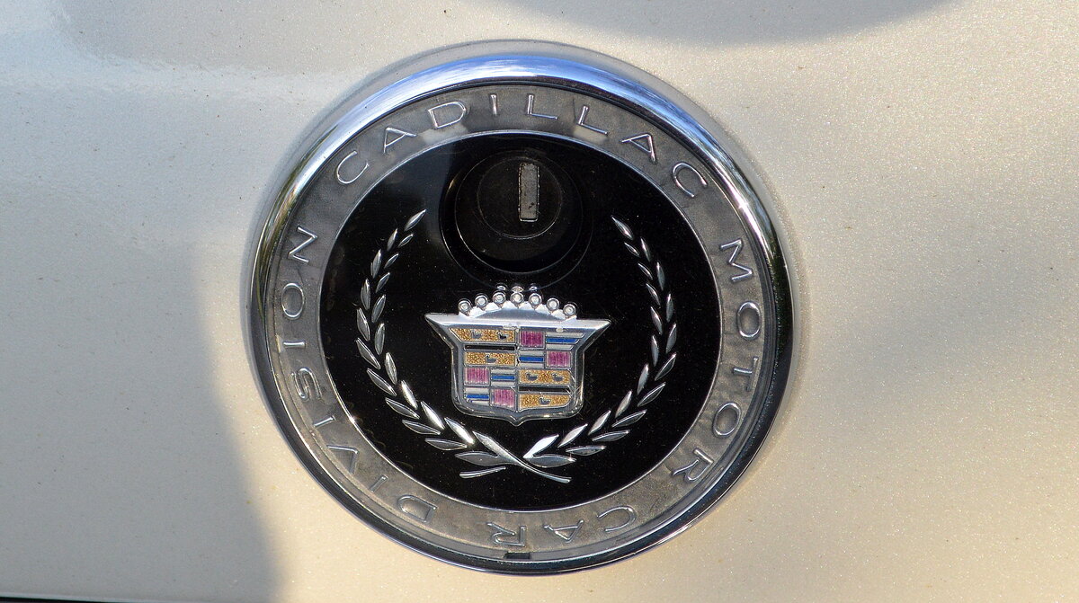 Firmenlogo auf einem amerikanischen Cadillac Seville STS4.6 V8 32V Northstar, 27.04.22 Berlin Marzahn.