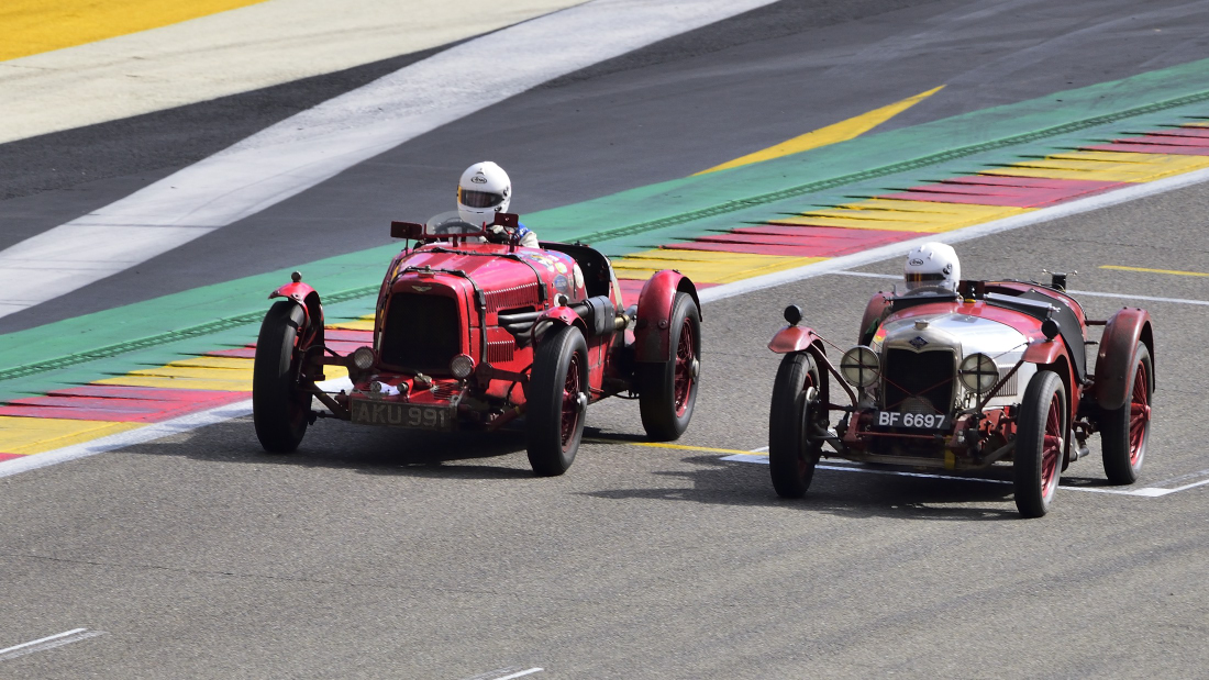 Zweikampf: RILEY Brooklands - 1929 (Rechts) und ASTON MARTIN Ulster - 1935. Pre War Sports Cars Rennen, Spa Six Houers am 1.10.2022