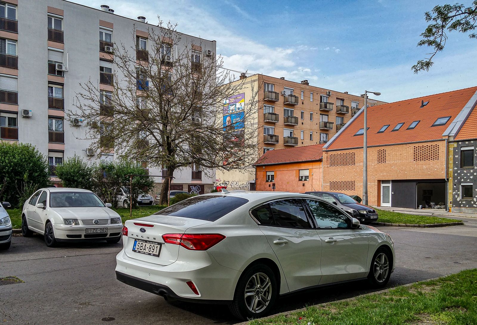 Rückanischt: Ford Focus Mk4 Sedan. Foto: Mai, 2021.