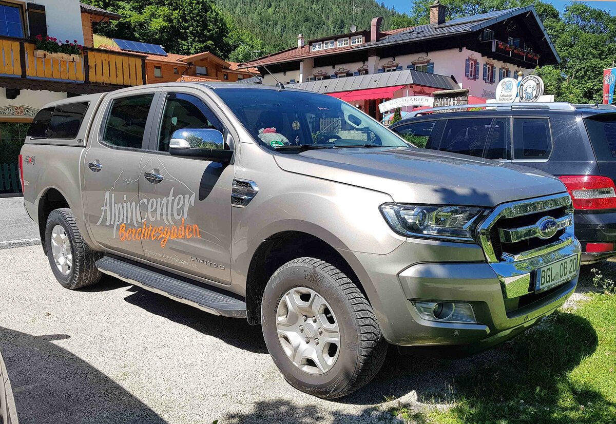 =Ford Ranger vom ALPINCENTER BERCHTESGADEN steht in Juli 2022 in Bad Reichenhall