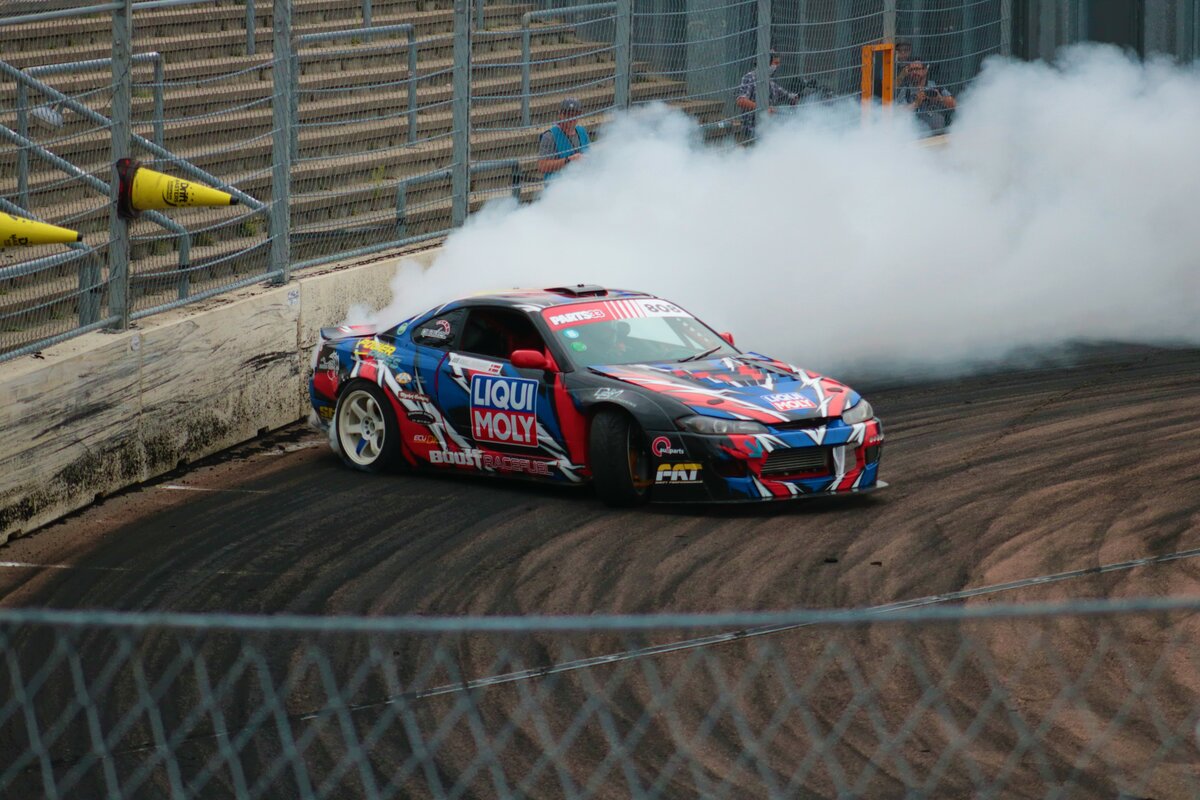 Nissan Driftfahrzeug am 19.08.22 beim Drift Masters European Chmapionsship in Ferropolis der Stadt aus Stahl
