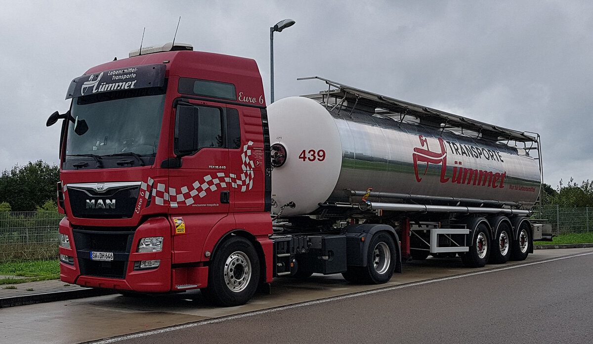 =DAF-Sattelzug der Molkerei BERCHTESGADENER LAND steht im Juli 2022 in Piding