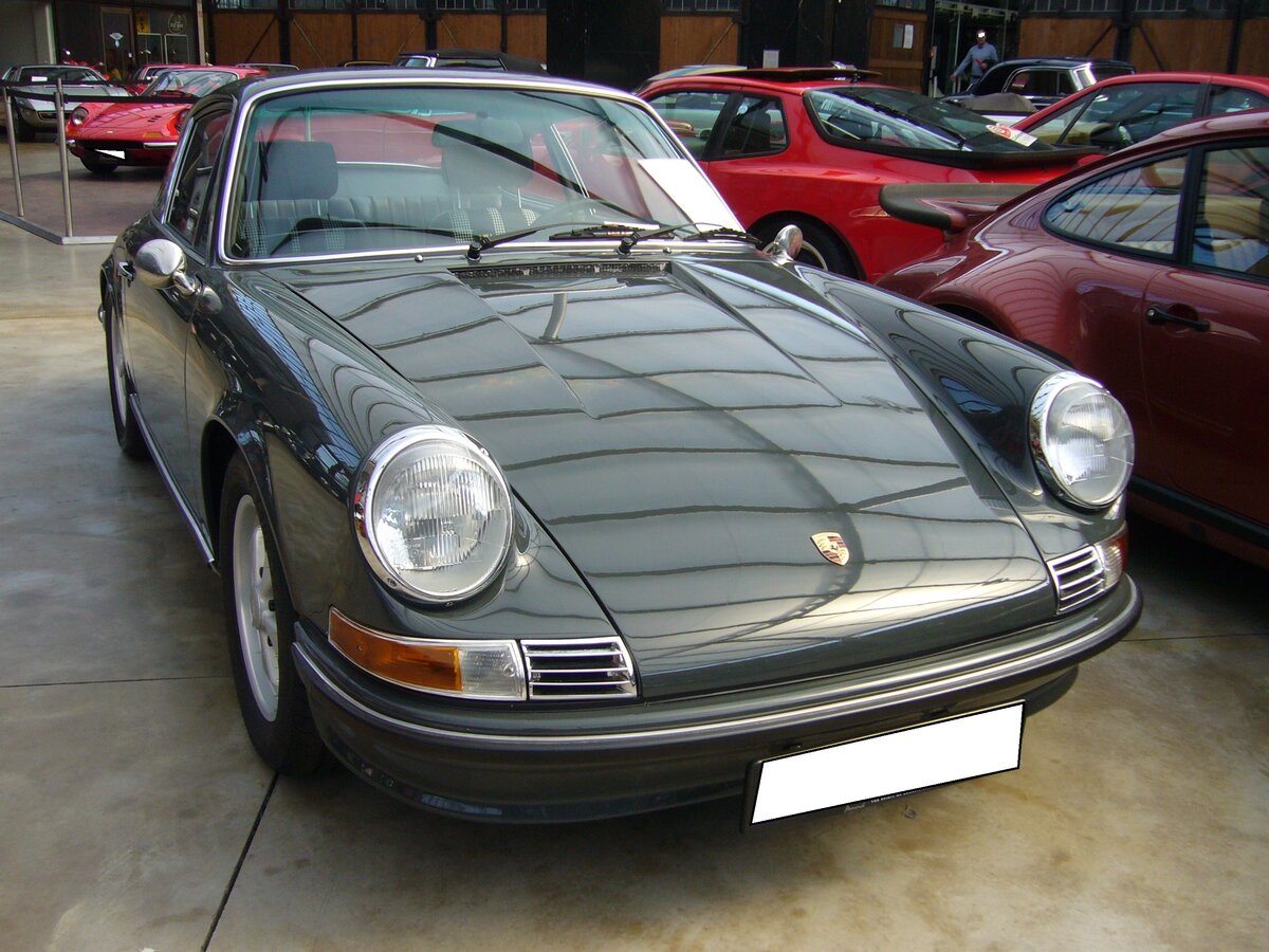 Porsche 911E aus dem Jahr 1969. Dieser 911E im Farbton slate grey wurde technisch aufgerüstet. Er ist mit dem Motor des legendären Porsche 911 2.7RS ausgerüstet. Dieser Sechszylinderboxermotor hat einen Hubraum von 2653 cm³ und leistet 260 PS. Des weiteren erhielt dieses Auto das Fahrwerk des 2.7RS, eine größere Bremsanlage und einen Ölumlaufkühler. Classic Remise Düsseldorf am 12.09.2022.