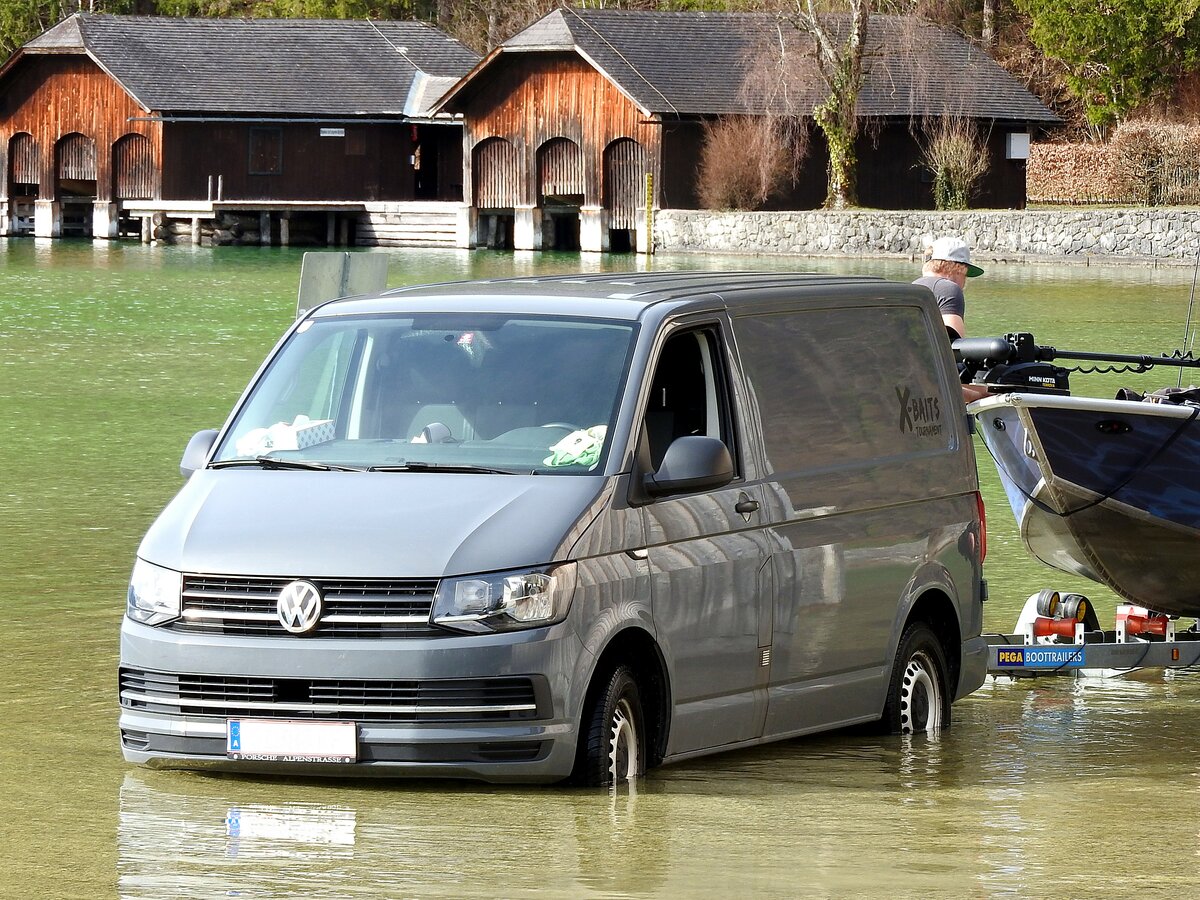 VW-T6 wagt sich in den Abersee, um das mitgeführte Motorboot "einzubooten"; 230317
